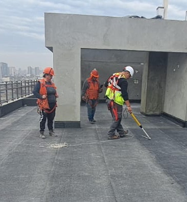 Nuestros técnicos especializados preparan la superficie impermeabilizada para la inspección con equipos de última generación.
